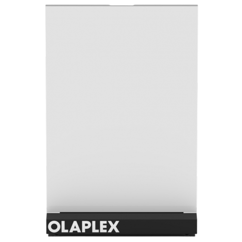 Acryl-Aufsteller mit OLAPLEX Logo für Markenkommunikation im Salon.