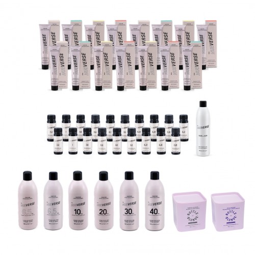 Das Color Complete Ultimate Set ist dein perfekter Einstieg in die Farbwelt von evo. Von permanenter und demi-permanenter Haarfarbe über Liquid Gloss bis hin zu Blondierung und Entwicklern in praxisgerechter Stückzahl: Mit diesem Set bist du vom ersten Tag an vollständig aufgestellt und sofort einsatzbereit im Salonalltag. Ideal, wenn du ohne Engpässe starten möchtest – oder dein Team gleichzeitig mit dem Farbsystem arbeiten soll, ohne dass Produkte direkt ausgehen.